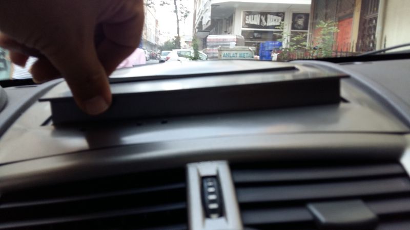 Aracın orjinal teybine entegre radyo göstergesinin olduğu bölüme takılıyor. Açılır kapanır kapaklı